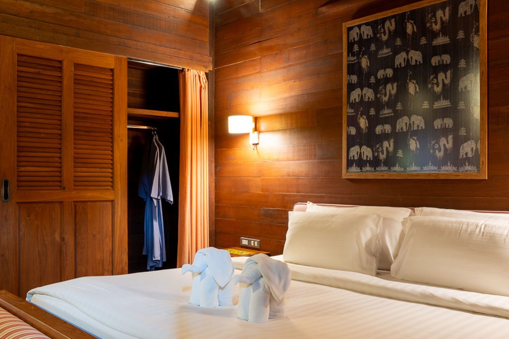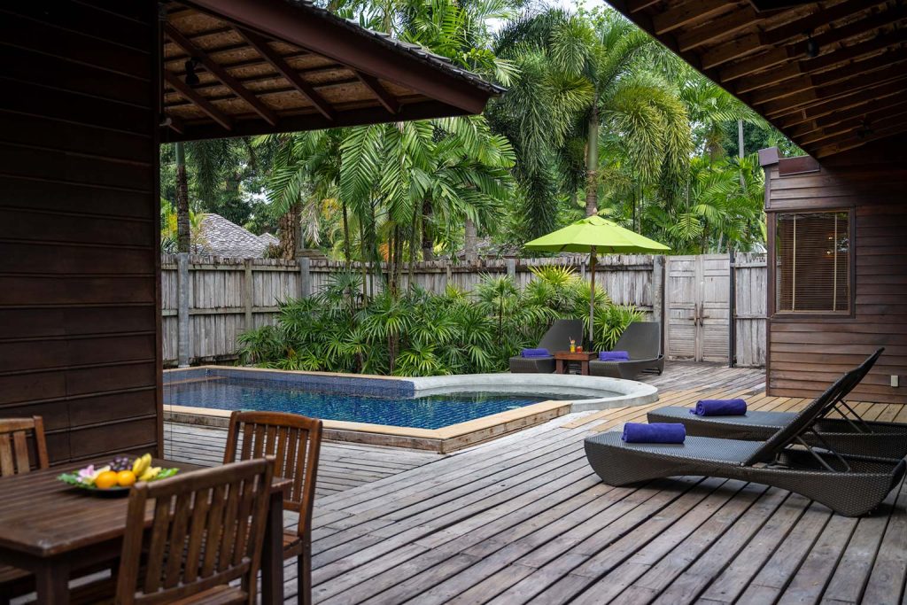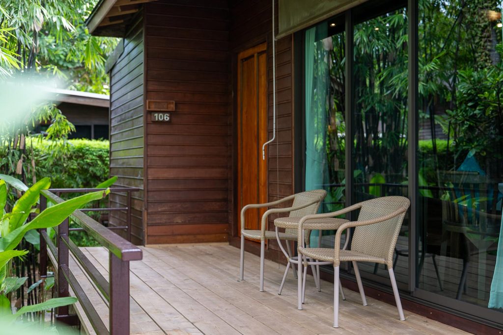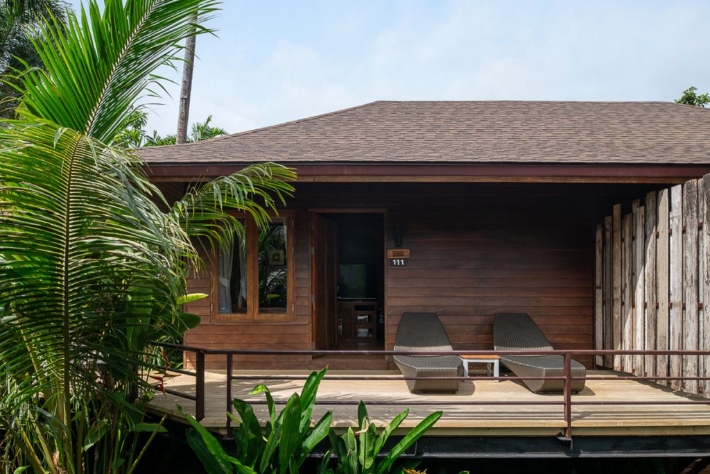 Tucked into the lush back area of the resort, our 50 m² Superior Rooms feature private wooden decks with sun loungers — overlooking the rainforest, pond, or pool, depending on the cottage location.