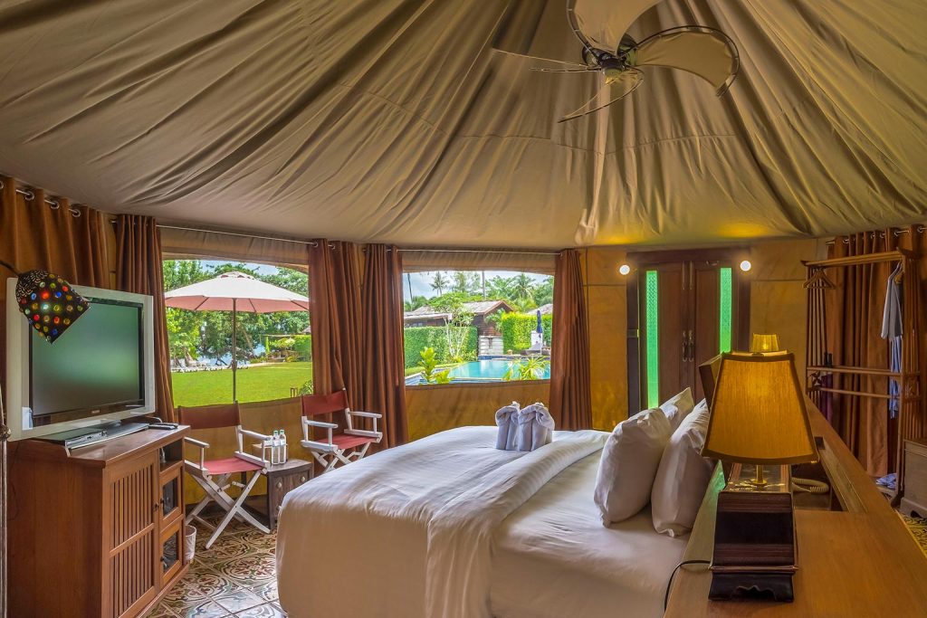 Designed for two, this one-of-a-kind unit offers a true glamping experience — a real tent with a king-size bed, warm wood furnishings, and your own private outdoor bathroom. Step out to an open-air shower and toilet area, surrounded by nature and breeze.